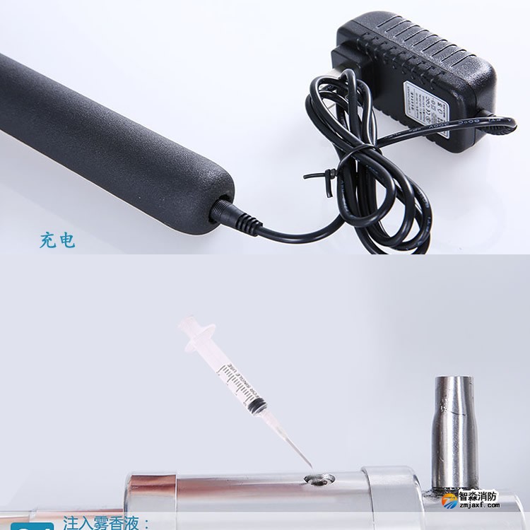 槍頭、連接桿、電池桿、充電器、霧香液、注入器、簡易試驗筆、手報吸盤。