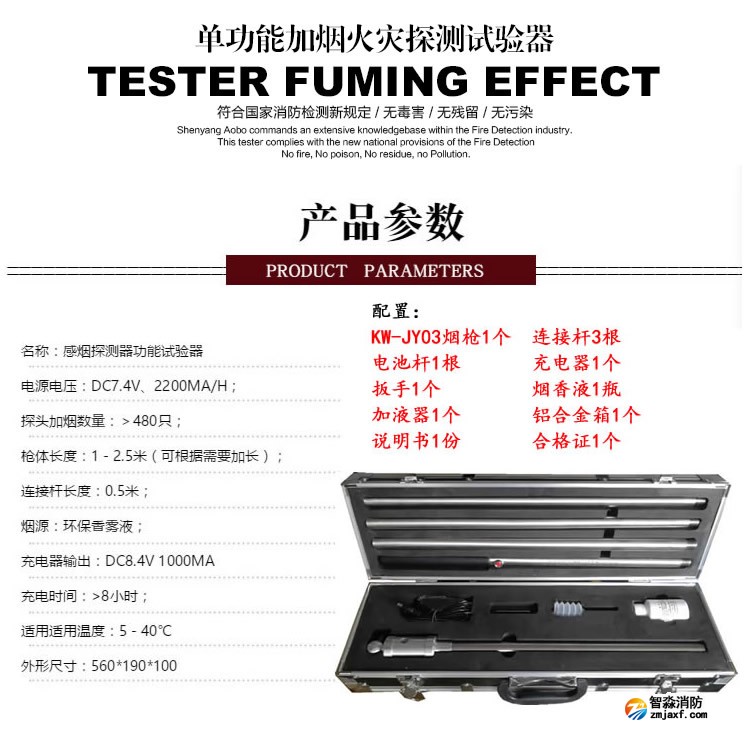 ZM-Y感煙探測器功能試驗器是4+2全功能火災探測器試驗器的子產品,利用物理學和化學原理控制和轉換技術,采用環保型霧香液通過電子能量轉換,將液體釋放哦顆粒煙霧,取代并淘汰了傳統的棒香發煙方式,發出的煙霧無明火、無煙灰、無煙油,對探頭無二次污染。以其結構緊湊,外形精美,攜帶方便,組裝簡單,操作靈活,槍體輕便,性價比高等受到廣大用戶的青睞。全結構為不銹鋼設計,鋁合金箱包裝,可對感煙類(各種型號的離子、光電及復合類煙感探測器)火災探測器進行維護、檢測、調試、驗收、靈敏度試驗。是湛江消防檢測、消防工程及使用火災報警系統的單位輔助工具。